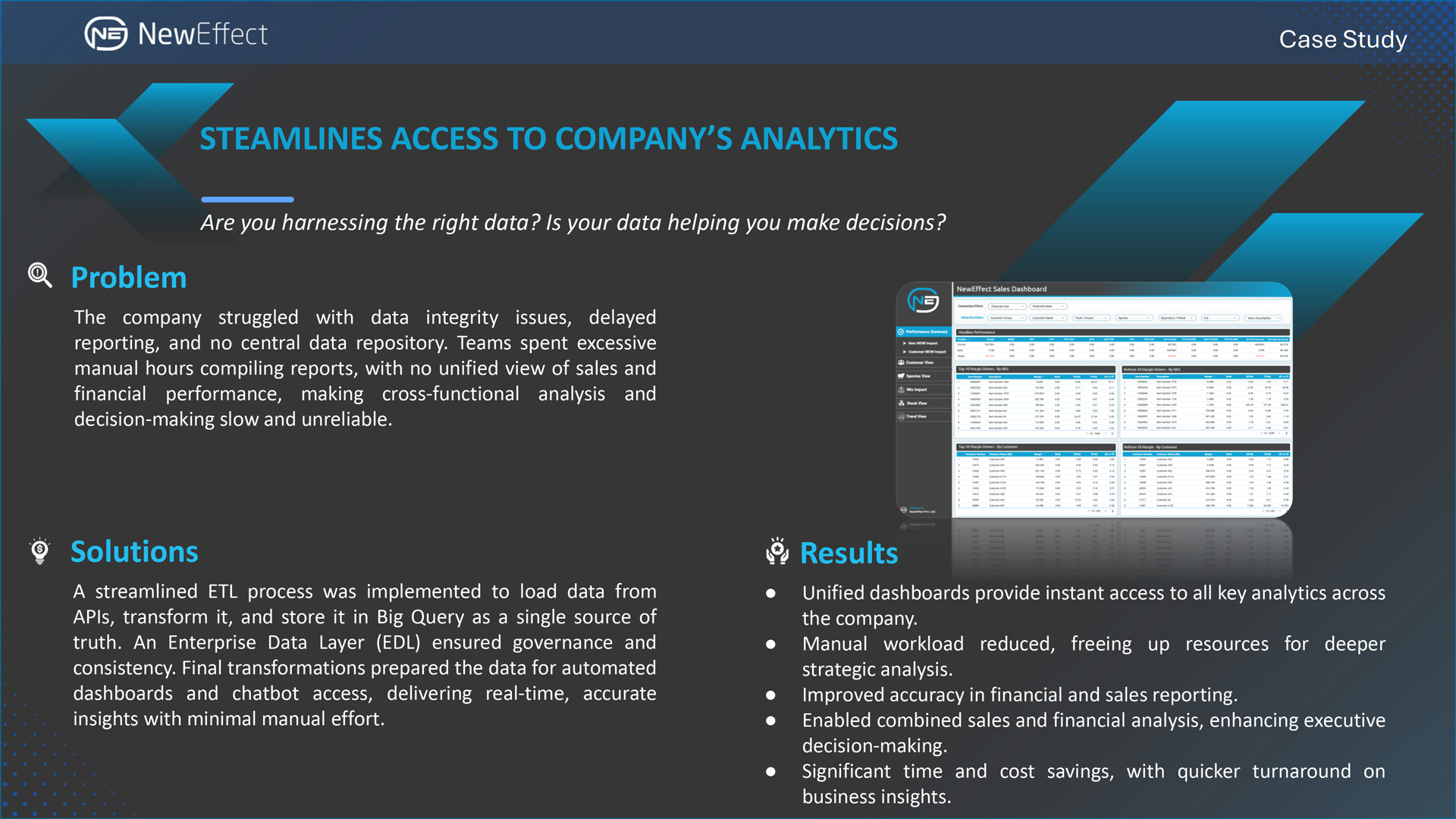 At NewEffect, we help organisations unlock the full potential of their data—driving smarter decisions, sharper insights, and measurable growth.